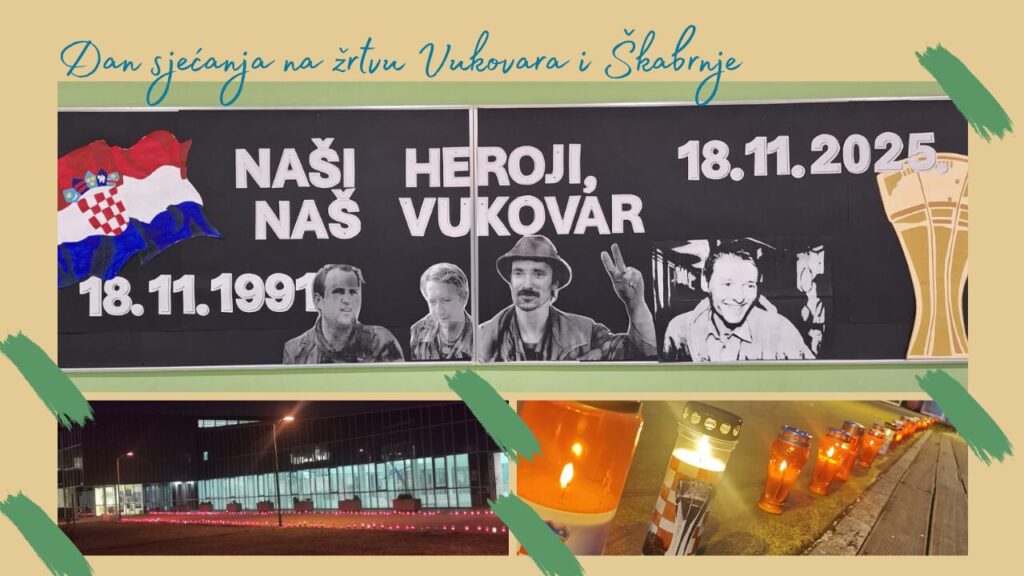 Učenici i djelatnici škole obilježili su Dan sjećanja na žrtvu Vukovara i Škabrnje. U školskom atriju postavljen je pano posvećen Gradu heroju i svim braniteljima koji su dali živote za slobodu naše domovine. Tijekom dana upaljeni su lampioni u školskom dvorištu uz poruku da žrtva Vukovara i Škabrnje nije zaboravljena.