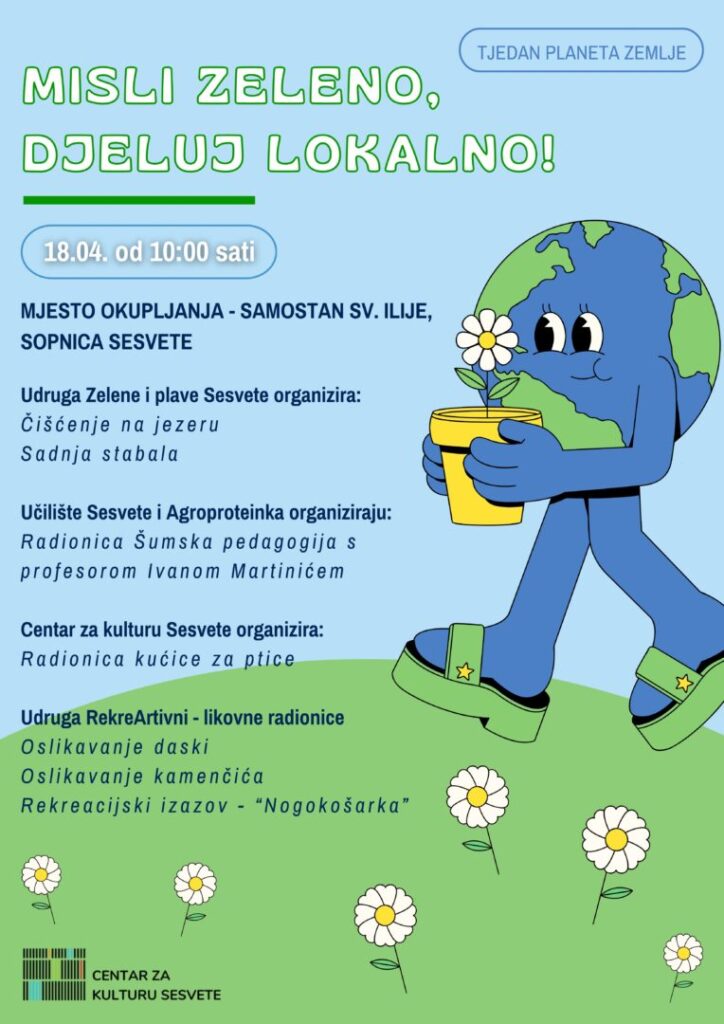 želimo vas obavijestiti o velikoj ekološkoj akciji čišćenja šume i jezera u Sesvetskoj Sopnici koja će se održati u subotu 18. travnja. Okupljanje će biti od 10 sati kod samostana Sv. Ilije gdje ćemo održati niz besplatnih edukativnih ekoloških radionica.