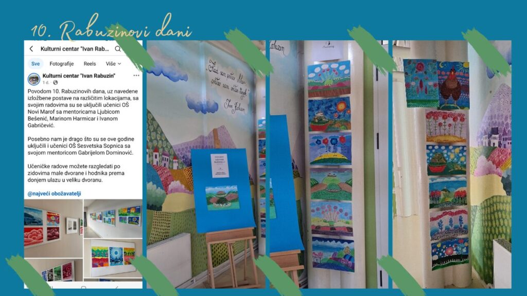 Izložba učeničkih radova bila je postavljena u školskom prostoru uz mural posvećen Ivanu Rabuzinu, a sad se nalaze u Kulturnom centru Ivan Rabuzin u Novom Marofu gdje se upravo održavaju 10. Rabuzinovi dani.