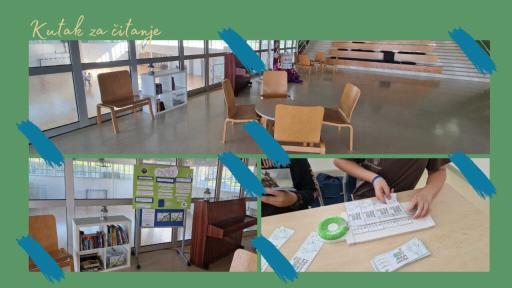 Odlučili smo pozvati učenike da pregledaju svoje police s knjigama i potraže naslove koji traže nove čitače. Učenici su donijeli desetke naslova. Donijeli smo stolce i stol, posložili knjige i udahnuli im novi život.