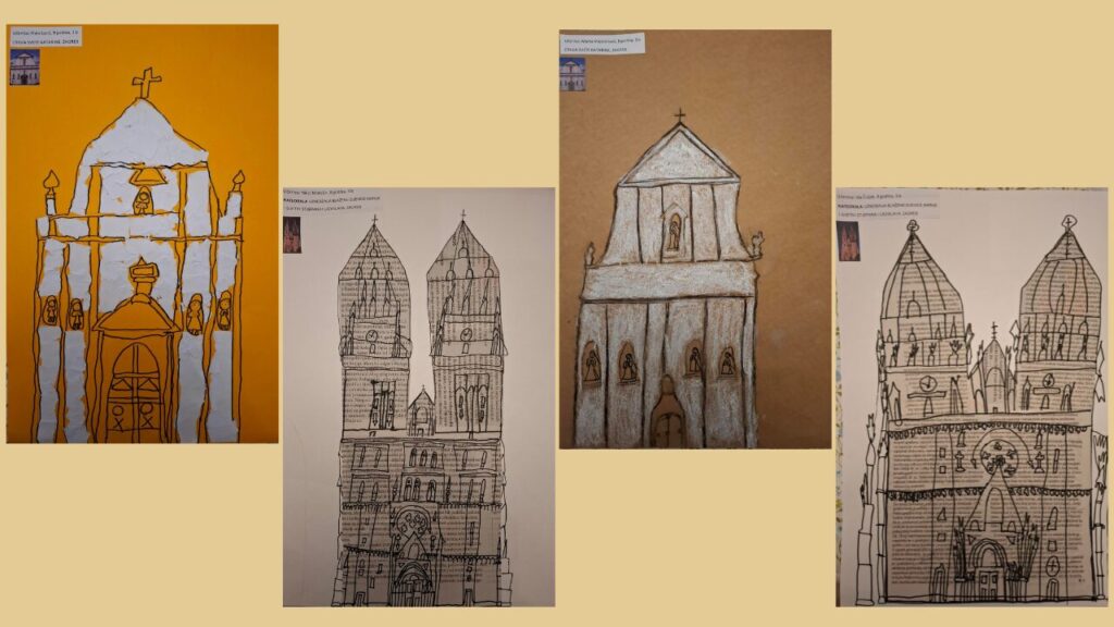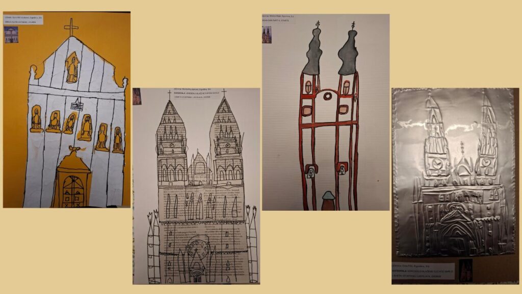 Različitim likovnim tehnikama predstavili su: crkvu svetog Marka, crkvu svete Katarine, Zagrebačku katedralu i crkvu Svih svetih u Sesvetama.