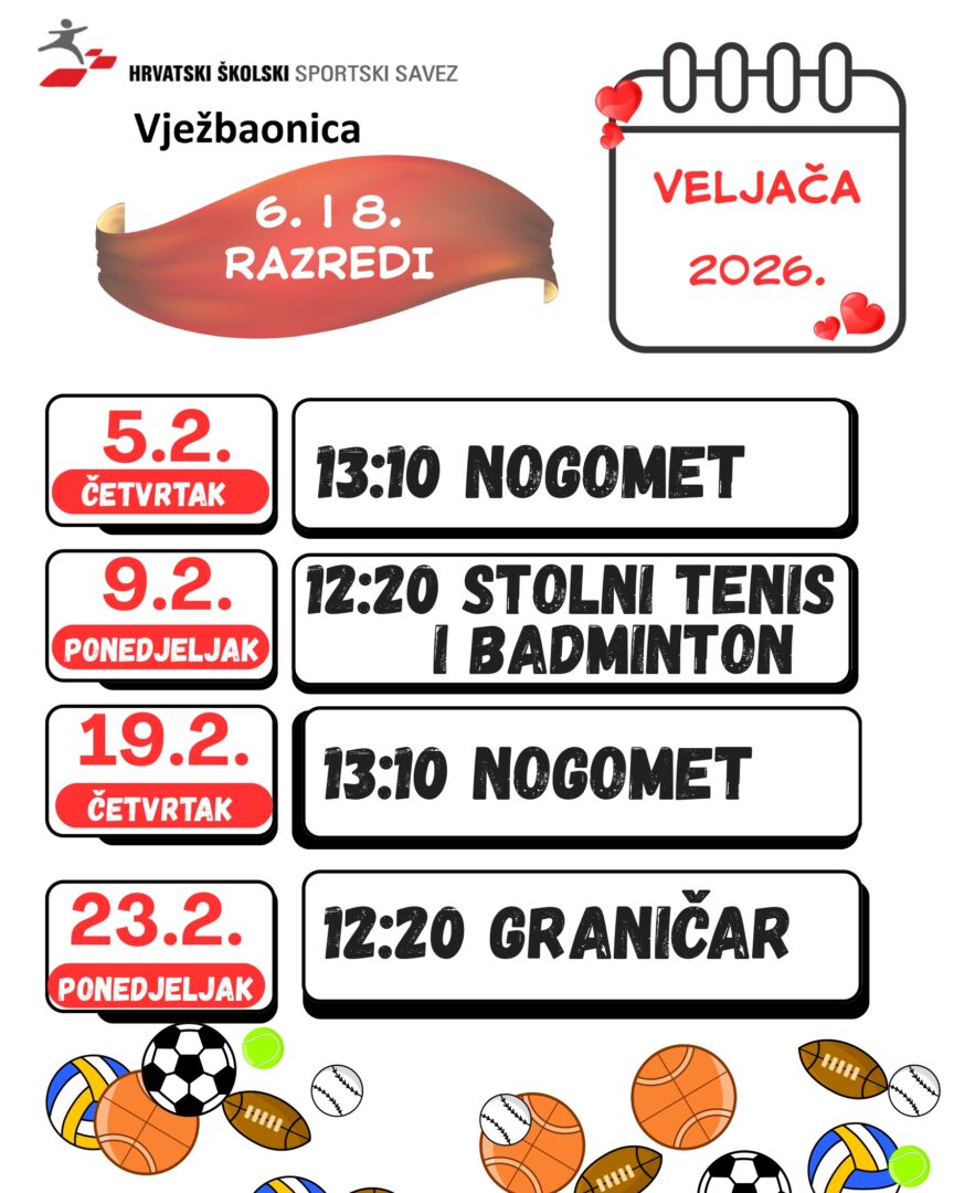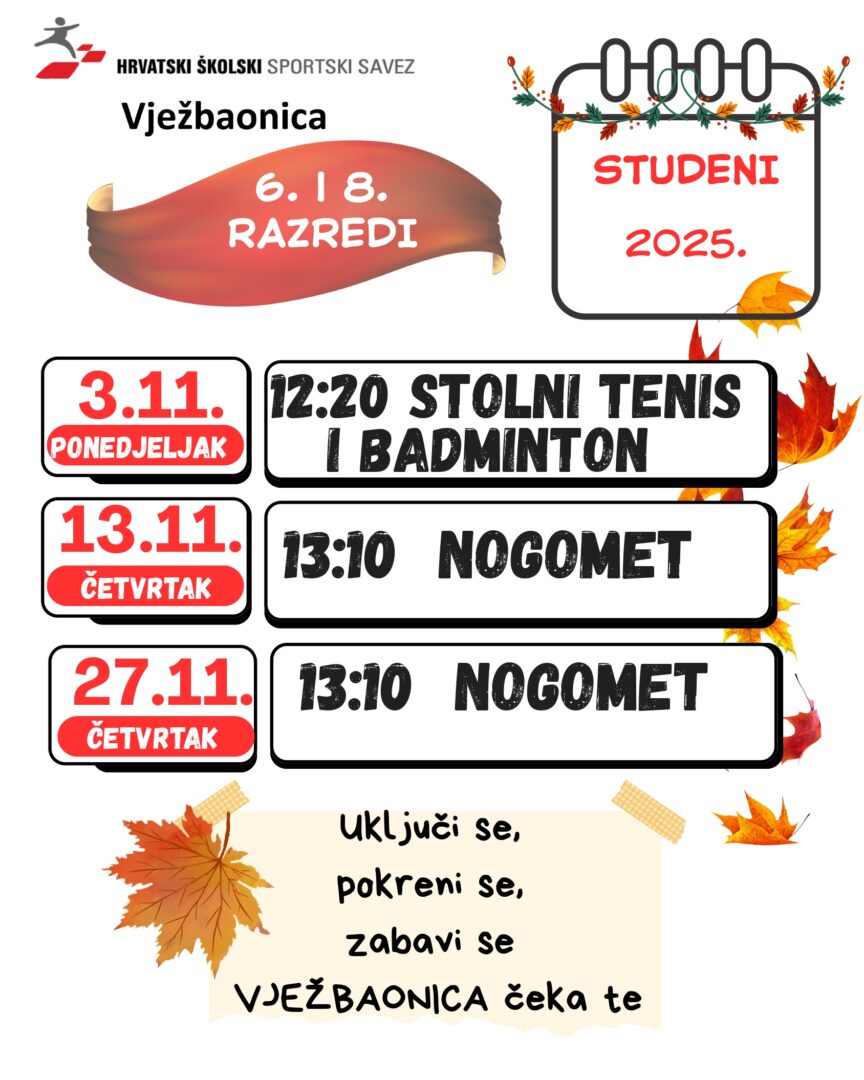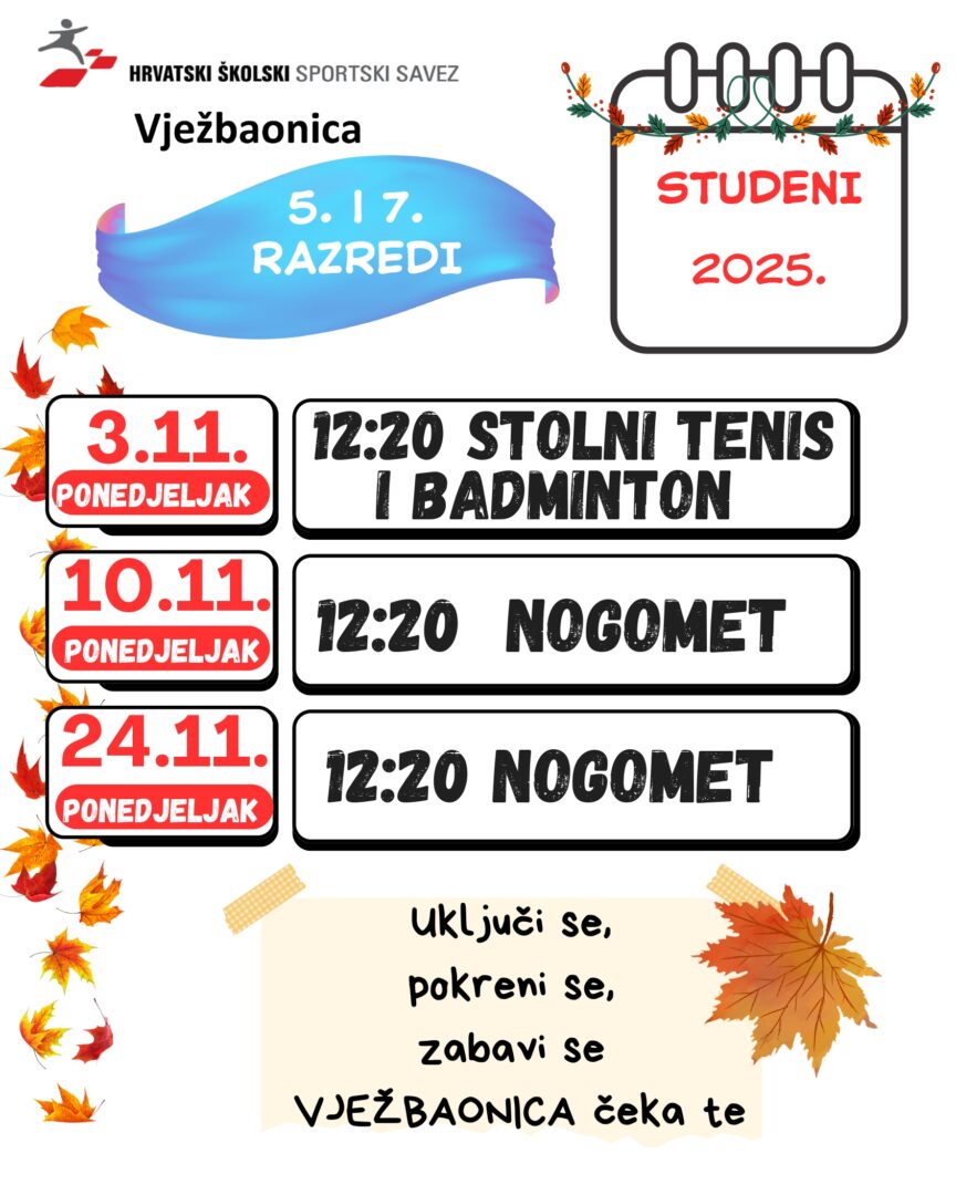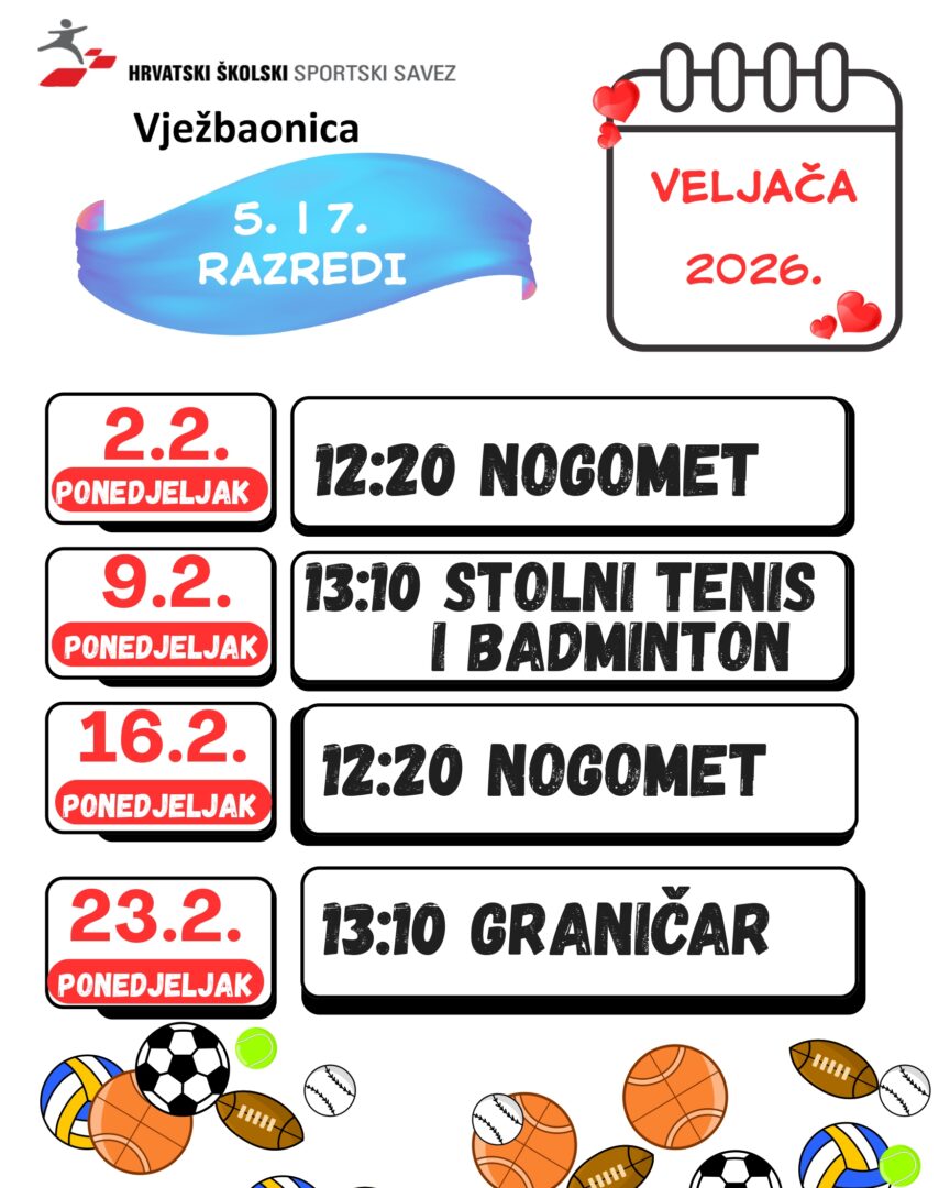 Budući da su mnogi petaši i osmaši iskazali zanimanje za bavljenje sportskim aktivnostima, od studenog u projekt Vježbaonice uključujemo sve učenike od 5. do 8. razreda.