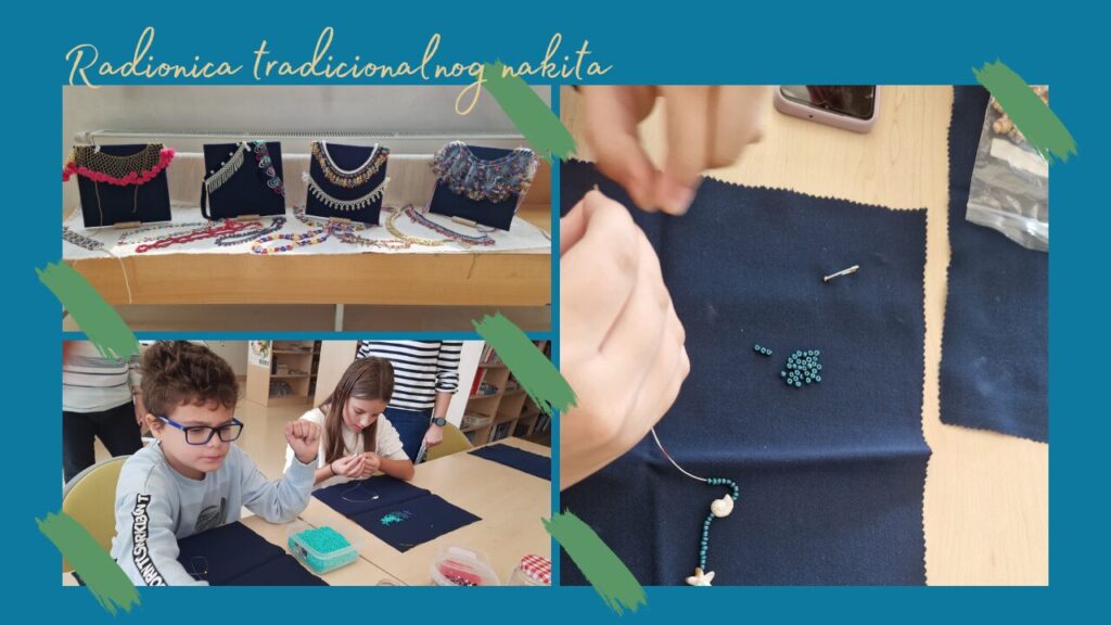 U četvrtak, 2. listopada, učenici petog i šestog razreda sudjelovali su u prvoj radionici izrade tradicijskog nakita uz pomoć udruge Etno-raj-o-grlice i pod vodstvom učiteljice Melinde Tupek, predsjednice školske zadruge IZVOR. Učenici su pogledali izložbu tradicijskog nakita iz raznih regija Lijepe naše i naučili nešto o nakitu. Najviše su uživali u izradi vlastite narukvice koju su dobili na poklon.