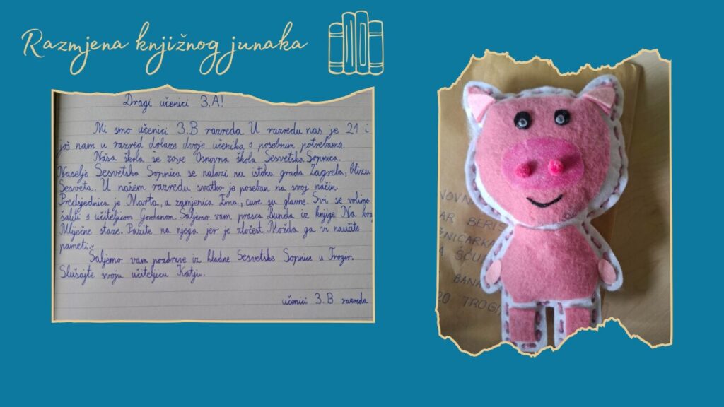 Prošli tjedan izradili su knjižnog junaka prasca Bunda i poslali ga u Osnovnu školu Petar Berislavić, u Trogir. Prijateljima iz 3. a napisali su pismo.